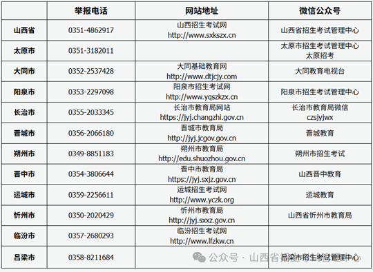 山西省2025年成人高考考試期間舉報電話、網站地址及微信公眾號