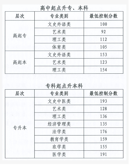 2025年北京市成人高校招生錄取最低控制分數線