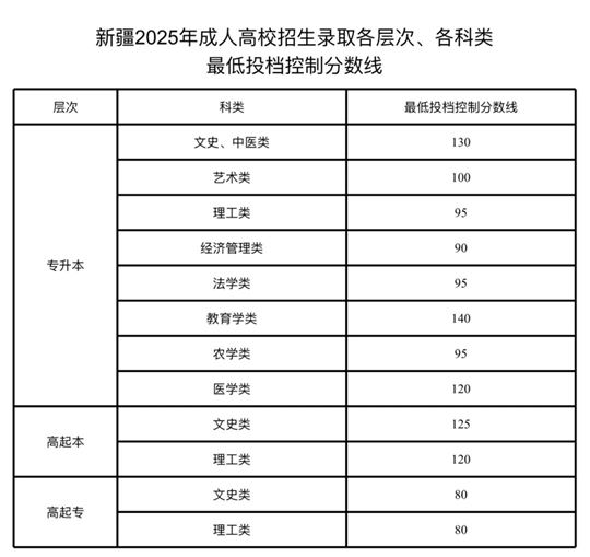 | 關于公布新疆2025年成人高校招生錄取最低投檔控制分數線及錄取工作時間安排的公告 |