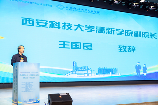 在儀式上,我院副院長王國良代表西安科技大學高新學院全體師生,對市、區人社領導及參訓教師表示熱烈歡迎。王院長介紹了學院的辦學特色與“以就業為導向”的育人理念,強調此次培訓對于提升師資能力、促進就業工作的重要意義。他表示,學校將全力做好服務保障工作,并祝愿各位老師在培訓中學有所獲、學以致用。