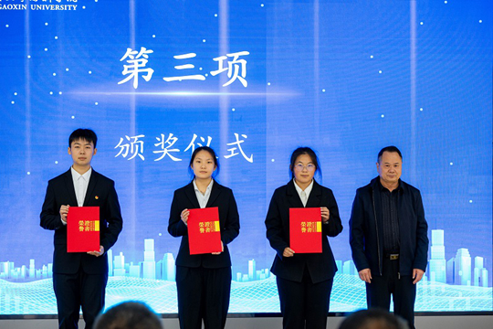 特別是在2025年陜西省賽中,學校推送的11項作品有10項獲獎,獲獎率高達91%,在全省同類型院校中排名第2位,并首次斬獲“優秀組織單位”與“進步顯著獎”。更在第十九屆“挑戰杯”國賽中榮獲主體賽國家三等獎,位居同類型院校之首,實現了歷史性突破。這些成績的取得,源于學校將“挑戰杯”作為引領青年科技創新的重要抓手。通過深化“一院一賽”制度、舉辦“追光計劃”“攀登計劃”分享會百余場,并依托社會實踐與“揭榜掛帥”機制,有效推動了競賽成果從“教室”走向“市場”、從“賽場”走向“職場”,形成了“產學研用”深度融合的良性循環,為新質生產力賦能高質量發展奠定了堅實基礎。頒獎儀式上,校領導為獲獎團隊、個人及相關單位鄭重頒發榮譽證書。燈光下,證書的金邊與獲獎者眼中的光芒交相輝映,這不僅是對過往努力的肯定,更是對未來科創征程的期許。