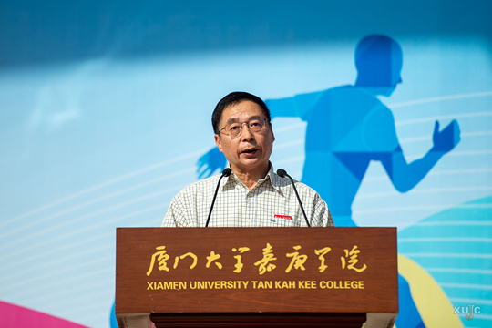 雷銳生引用“體育強(qiáng)則中國(guó)強(qiáng),國(guó)運(yùn)興則體育興”,強(qiáng)調(diào)體育的重要性。他指出,一直以來(lái),學(xué)校弘揚(yáng)校主陳嘉庚先生“強(qiáng)國(guó)強(qiáng)民”的愛(ài)國(guó)體育思想,以立德樹(shù)人為根本,秉持健康第一的教育理念,以增強(qiáng)學(xué)生體質(zhì)為中心,扎實(shí)推進(jìn)體教融合落地,不斷深化體育俱樂(lè)部教學(xué)模式的改革與實(shí)踐。在過(guò)去的兩年,學(xué)校體育工作緊跟時(shí)代步伐,在體育競(jìng)賽、教學(xué)科研、設(shè)施建設(shè)、校企合作等方面取得了長(zhǎng)足的進(jìn)步。值得一提的是,在2024年、2025年中國(guó)大學(xué)生跆拳道錦標(biāo)賽中,跆拳道隊(duì)勇奪甲組團(tuán)體總分全國(guó)第一,成功實(shí)現(xiàn)四連冠;在2024年、2025年福建省大學(xué)生游泳錦標(biāo)賽中,游泳隊(duì)強(qiáng)勢(shì)拿下7金6銀5銅;在2024年福建省大學(xué)生網(wǎng)球聯(lián)賽中,網(wǎng)球隊(duì)斬獲甲組混合團(tuán)體冠軍。不僅如此,2025年,校跆拳道隊(duì)、游泳隊(duì)、籃球隊(duì)、田徑隊(duì)的6名隊(duì)員跨專(zhuān)業(yè)成功考上國(guó)內(nèi)外知名高校體育專(zhuān)業(yè)研究生。