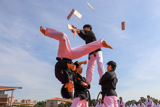開(kāi)幕式表演上,武術(shù)、跆拳道、瑜伽等俱樂(lè)部的學(xué)生代表帶來(lái)以“健康快樂(lè)”為主題的跆拳道表演。該表演由跆拳道俱樂(lè)部牽頭,融入特技等元素。同學(xué)們通過(guò)“方正承韻”“五星同心”“英才領(lǐng)航”“梯次登高”四幕表演,展現(xiàn)了嘉庚學(xué)子昂揚(yáng)的精神風(fēng)貌,為運(yùn)動(dòng)會(huì)拉開(kāi)精彩序幕。