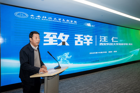 本次活動在西安科技大學高新學院宣傳片中拉開了序幕,宣傳片中生動展現了學校在學科建設、人才培養、科學研究及校園文化等方面的豐碩成果與蓬勃生機。西安科技大學高新學院院長汪仁發表了致辭。汪仁院長對與會企業代表表示熱烈歡迎,并強調了在新一輪科技革命和產業變革背景下,深化校企合作、共育創新人才的重要性。他指出,學院始終堅持以服務社會為導向,積極拓展校企合作的廣度與深度,希望以此次座談會為契機,與企業攜手探索更多元、更高效的合作模式,實現資源共享、優勢互補、共贏發展。