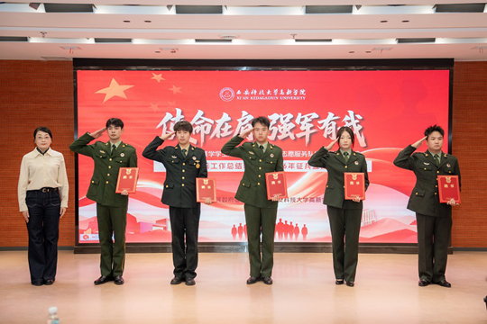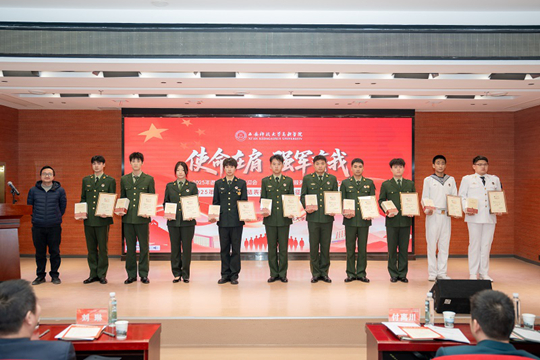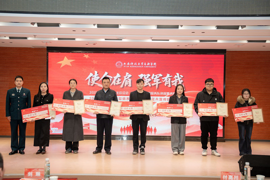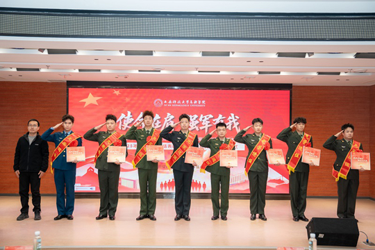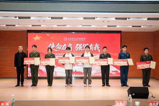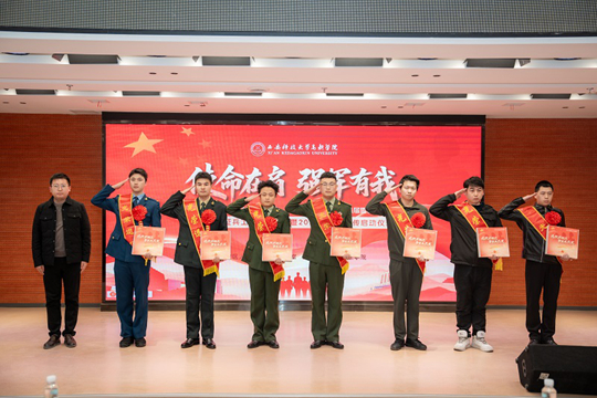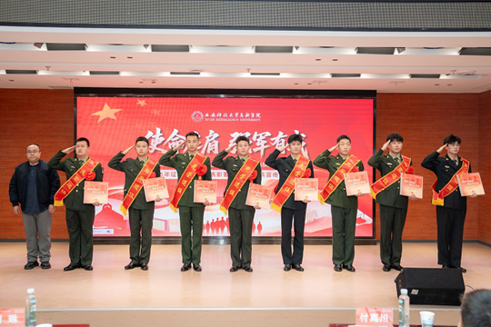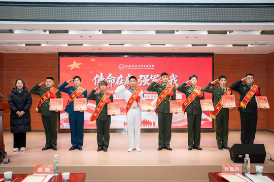 12月10日,西安科技大學高新學院2025年退役復學學生歡迎會、退役軍人志愿服務隊換屆暨表彰大會、2025年征兵工作總結表彰暨2026年征兵宣傳啟動儀式,在學院圖書館報告廳隆重舉行。