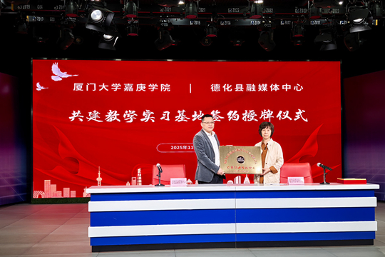 當(dāng)天上午,德化縣融媒體中心與英語語言文化學(xué)院的合作共建簽約儀式在德化縣融媒體中心舉行。雙方代表共同簽署了合作協(xié)議,并進(jìn)行了“實(shí)習(xí)實(shí)踐基地”授牌。根據(jù)協(xié)議,德化縣融媒體中心將成為廈門大學(xué)嘉庚學(xué)院英語語言文化學(xué)院學(xué)生穩(wěn)定的校外實(shí)踐平臺,為學(xué)生提供面向國際的新聞采編、視頻制作、新媒體運(yùn)營、跨文化傳播、活動策劃等全方位的實(shí)習(xí)崗位與專業(yè)指導(dǎo)。