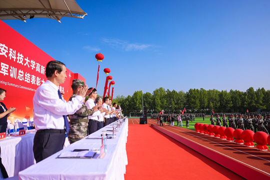 “書記同志,西安科技大學高新學院2025級學生軍訓總結表彰大會暨開學典禮準備完畢,請您指示!”參謀長孫澤云嘹亮的聲音劃破清晨的天空。“按計劃進行!”學校黨委書記劉琳下達指令。