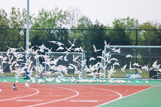 大會在熱烈的掌聲中圓滿落幕。現場特別安排了白鴿放飛環節鴿哨清亮,羽翼振翅,白鴿翱翔于天際,寓意銘記歷史、吾輩自強,愿和平永駐、歲月安寧!現場還設有“新”愿之箱,新生們將寫滿期許的星星,鄭重投入心愿箱,每一顆星,正面是姓名,背面是夢想,紙筆之間定格初心,為大學生活拉開充滿希望的序幕,這是一份與自己的約定,更是一場奔赴四年成長之旅的浪漫開端。開學典禮的最后漫天飛舞的彩色氣球騰空而起。