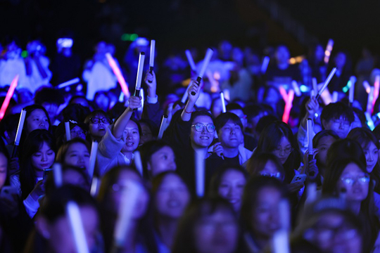 (圖六)新生輔導(dǎo)員與新生同臺演繹的《愛你》引爆全場沸騰!