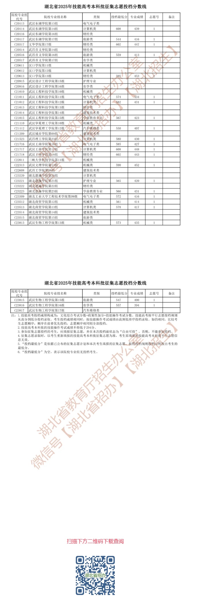 湖北省2025年技能高考本科批征集志愿投檔分數線