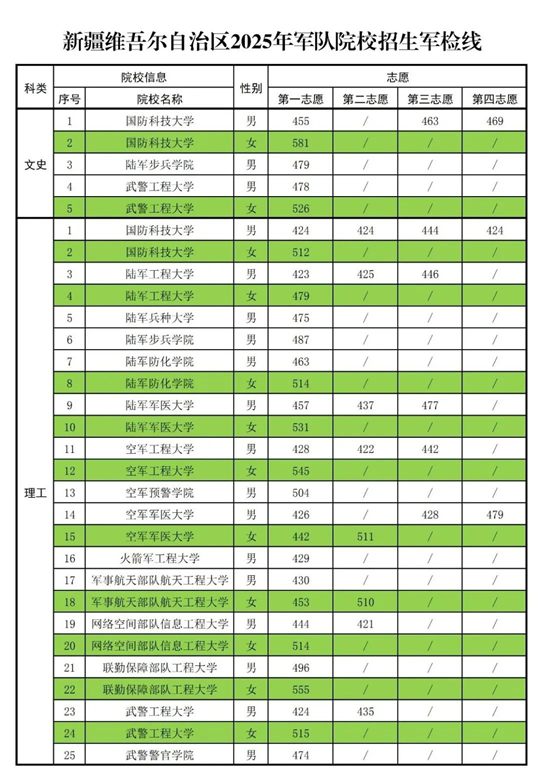| 2025年軍隊(duì)院校在疆招收普通高中畢業(yè)生軍檢線公布 |