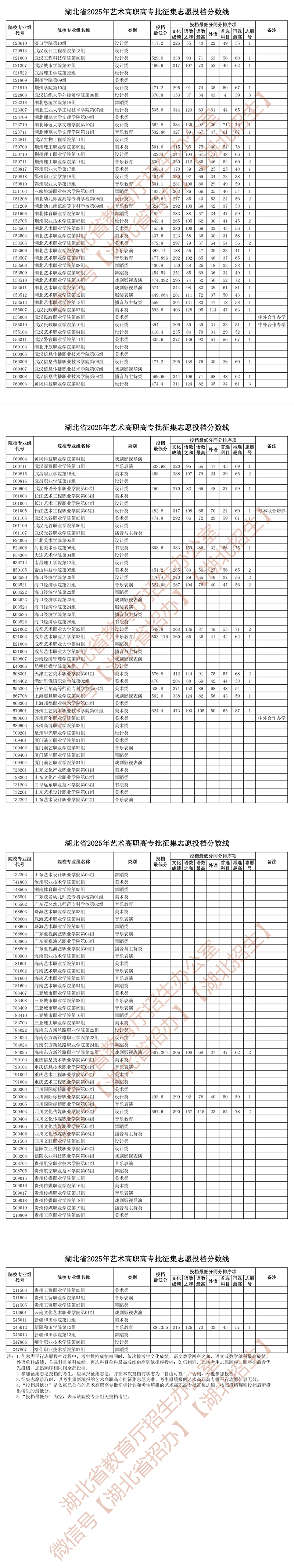 湖北省2025年藝術高職高專批征集志愿投檔分數線