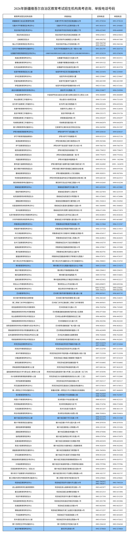 附件:2026年新疆維吾爾自治區(qū)教育考試機構高考報名咨詢電話