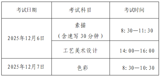專業考試與普通高招美術與設計類專業省統考統一安排,考試時間安排如下: