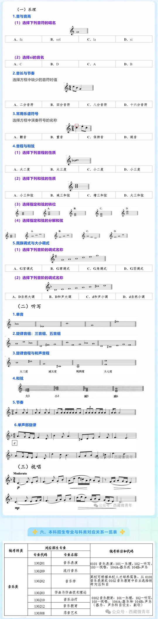 考試形式:采取筆試方式。使用五線譜記譜,提供標(biāo)準(zhǔn)音a^1^參照。