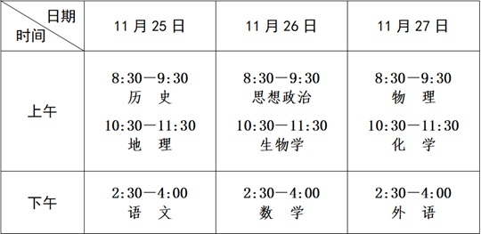 2025年下半年河北省普通高中學業水平合格性考試筆試科目考試將于11月25日-27日進行,各科具體時間安排如下: