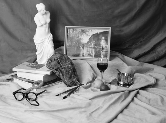 試題中選用的書本、水果、不銹鋼咖啡杯等不同形態的物體,其中既有自然形態,又有設計形態,能夠多層面考查學生運用色彩塑造形體的能力;試題中靜物有硬朗的石膏、挺括的牛仔帽、柔軟的襯布等,能夠很好地考查學生運用色彩工具對不同質感物體的深入刻畫與表現能力;《米洛斯的阿芙洛狄忒》雕像是古典美術的典型代表,有著近乎完美的形態比例,在不同版本的高中美術教材中均有出現,可以考查學生對教材的熟悉程度和應有的藝術素養,同時白色石膏像用色彩的方式來表現,能有效考查學生色彩技法運用能力及畫面的藝術表現力;帶框風景畫放入畫面,在以靜物為主體的試題中加入了風景元素,使畫面的整體節奏、色彩產生了更豐富的變化,可以進一步考查學生對畫面的整體把控和組織能力。