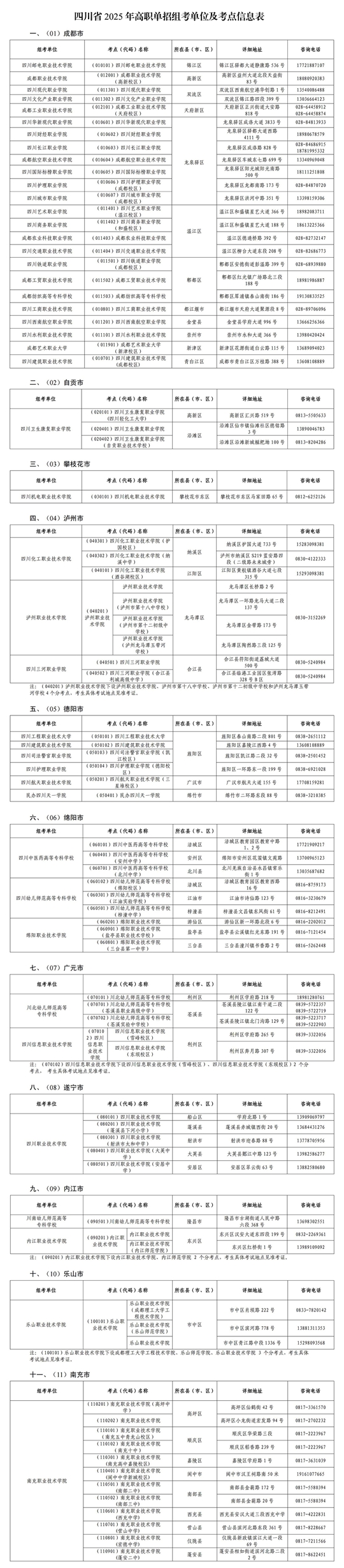 附件:四川省2025年高職單招組考單位及考點信息表