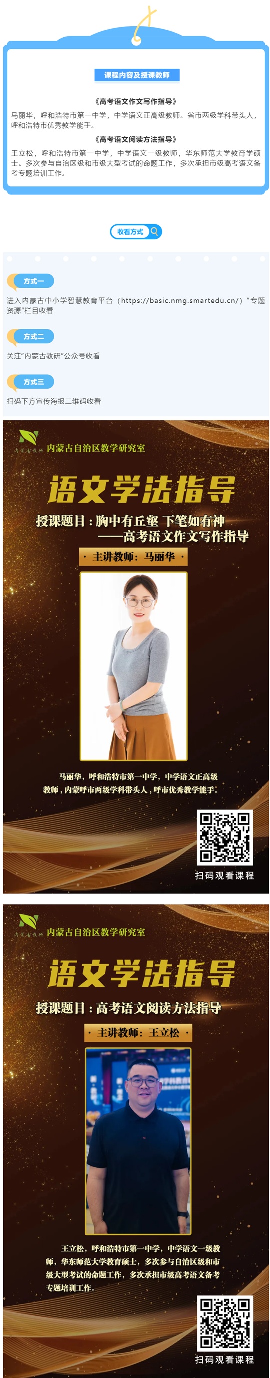 | @高三學生 內蒙古各學科學法指導課程和生涯規劃課程上線︱本期來看語文學法指導課程 |