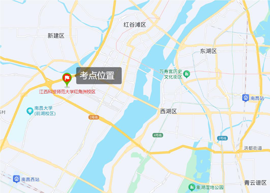 考點位置:江西科技師范大學(xué)紅角洲校區(qū)(江西省南昌市紅谷灘中心區(qū)紅角洲學(xué)府大道589號)