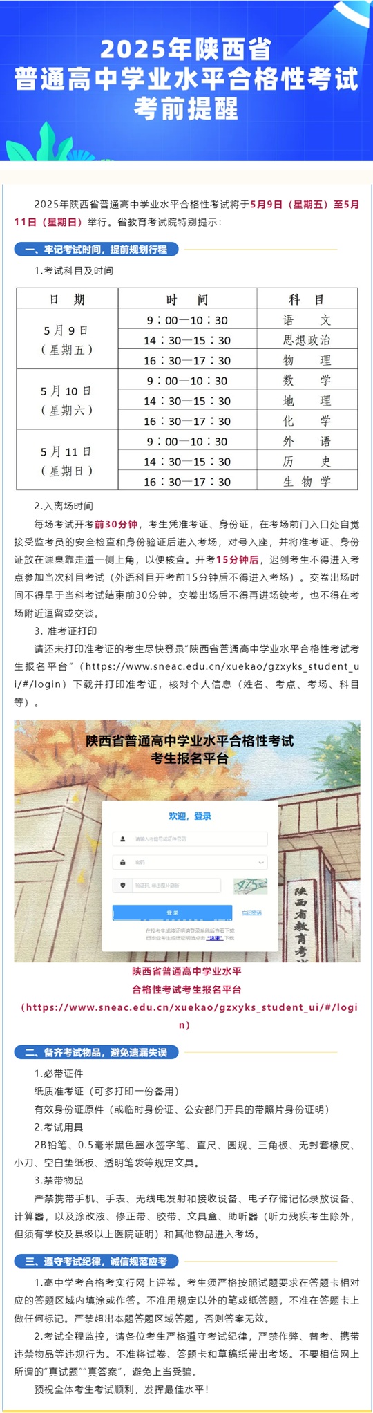 2025年陜西省普通高中學業水平合格性考試考前提醒