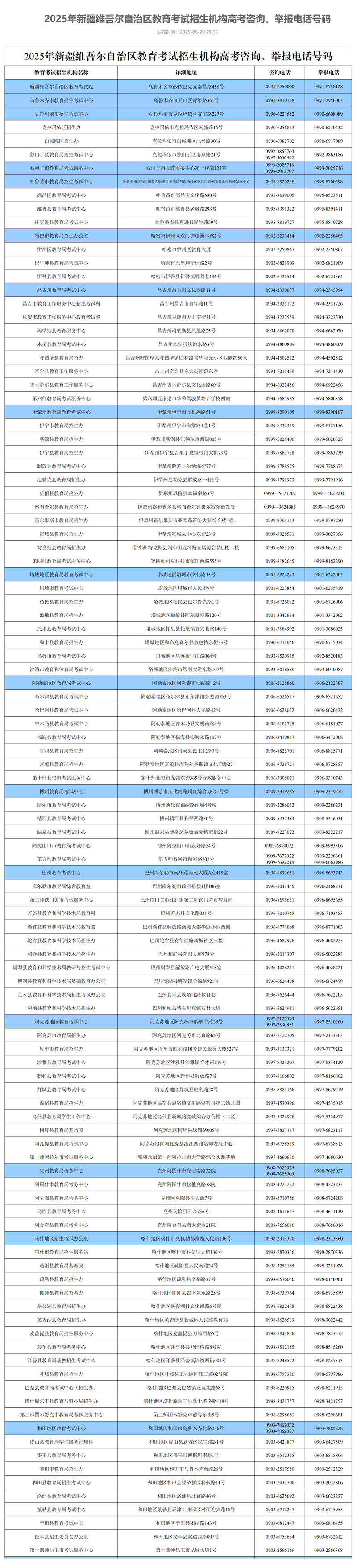 | 2025年新疆維吾爾自治區(qū)教育考試招生機構(gòu)高考咨詢、舉報電話號碼 |