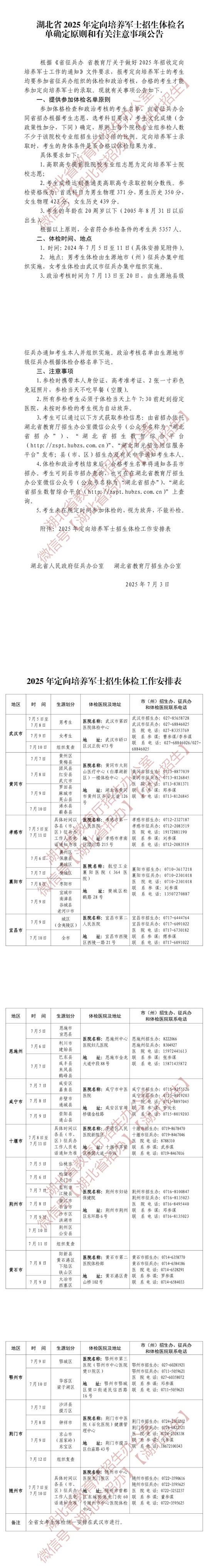 | 2025年湖北省定向培養(yǎng)軍士招生體檢名單確定原則和有關(guān)注意事項公告 |