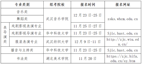各專業類別統考具體內容和要求以省教育考試院網站公布的《湖北省普通高等學校藝術類專業統一考試說明》為準。