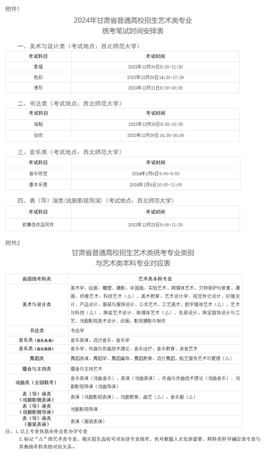1.2024年甘肅省普通高校招生藝術(shù)類專業(yè)統(tǒng)考筆試時(shí)間安排表