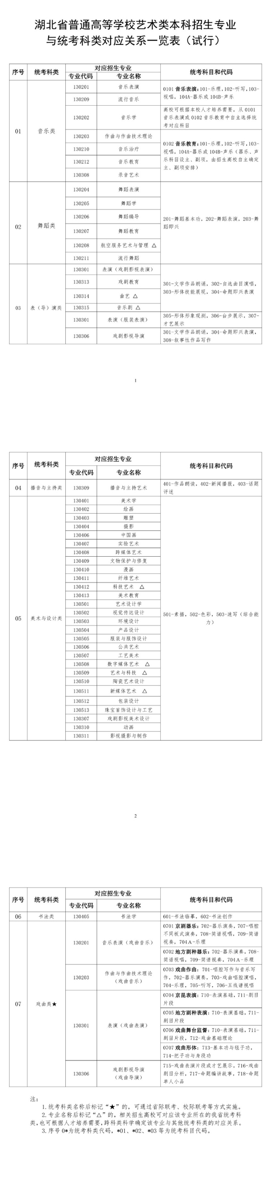 | 湖北省普通高等學(xué)校藝術(shù)類(lèi)本科招生專(zhuān)業(yè)與統(tǒng)考科類(lèi)對(duì)應(yīng)關(guān)系一覽表 |