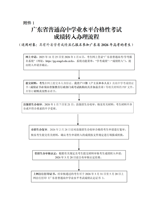 | 廣東:關于做好2026年普通高中學業水平合格性考試考生成績轉移工作的通知 |