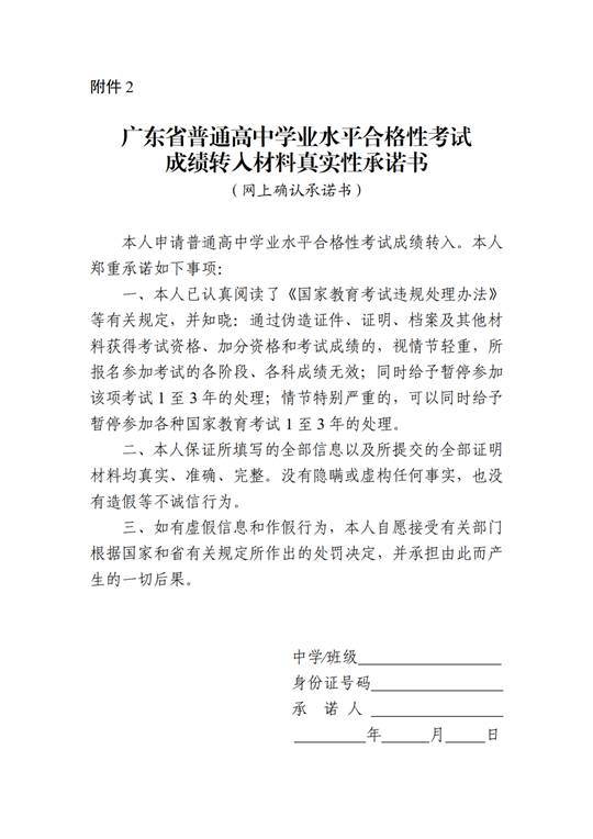 2.廣東省普通高中學業水平合格性考試成績轉入材料真實性承諾書(網上確認承諾書)