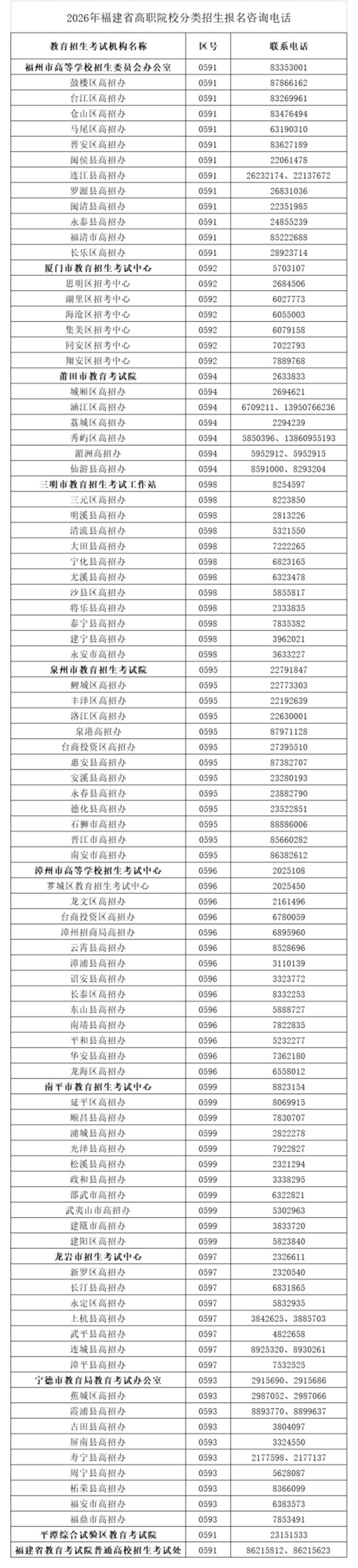 根據《福建省高等學校招生委員會 福建省教育廳關于做好2026年普通高等學校招生考試報名工作的通知》(閩招委〔2025〕9號)和《福建省教育廳關于印發<福建省高職院校分類考試招生改革實施辦法>的通知》(閩教學〔2019〕35號)等文件精神,為做好2026年我省高職院校分類考試招生(以下簡稱“高職分類招考”)報名工作,現將有關事項通知如下。