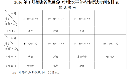 | 福建:關于2026年1月普通高中學業水平合格性考試報名工作的通告 |