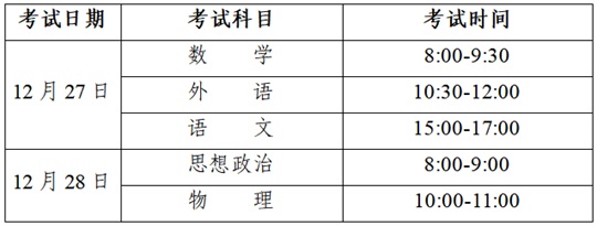 本次考試報名僅限已注冊我區普通高中學業水平考試考籍,并符合在我區參加普通高中學業水平考試條件的高二年級和高三年級(補考)考生報考。具有自治區普通高中正式學籍,且普通高中畢業當年符合我區普通高考報名資格的未注冊過學業水平考試考籍的高二、高三年級在校生,可先在規定時間內完成考籍補注冊后,再進行選課報名及繳費(含戶籍在我區,需從區外轉入我區,回戶籍地參加高考的考生)。高一年級新生不得報考。開考科目為語文、數學、外語、物理、思想政治5個科目。具體考試時間及科目安排如下: