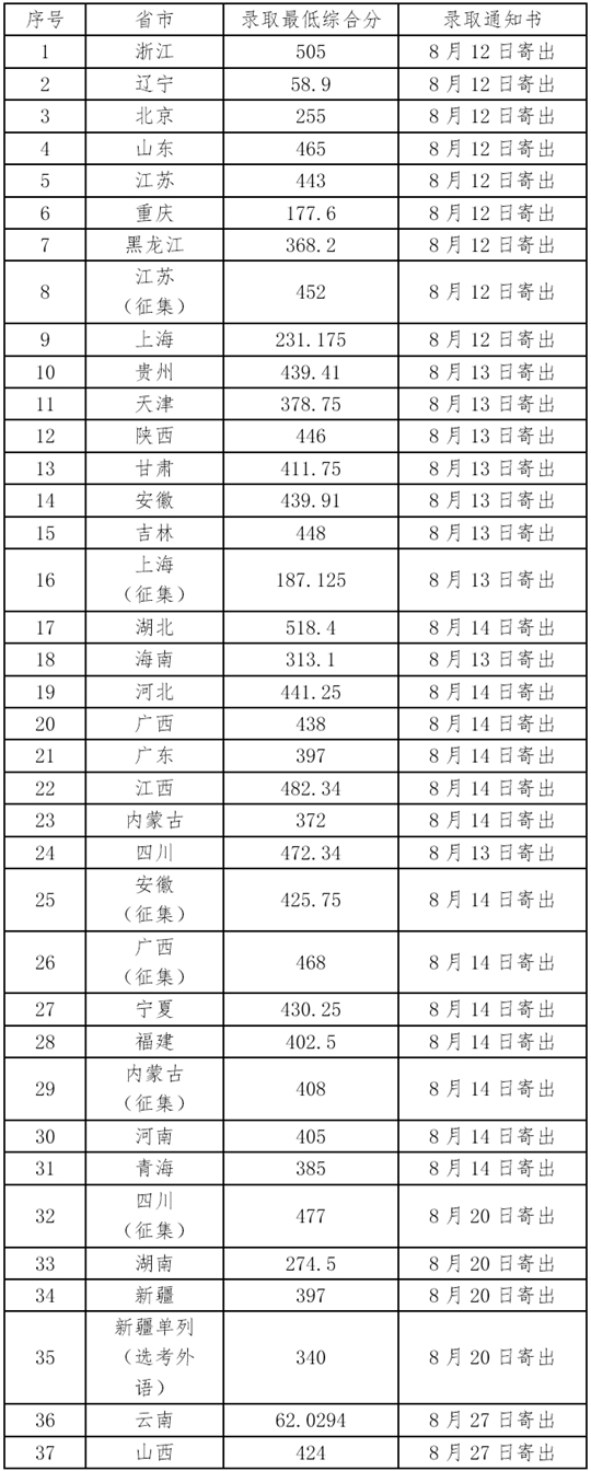 備注:綜合分以各省級招辦折算公式得出,具體可查詢各省級招辦官網。