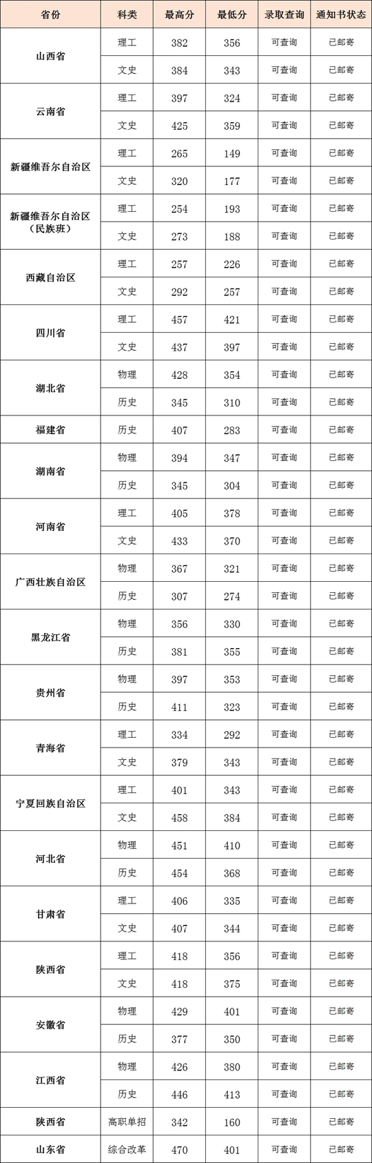 各省錄取信息一覽