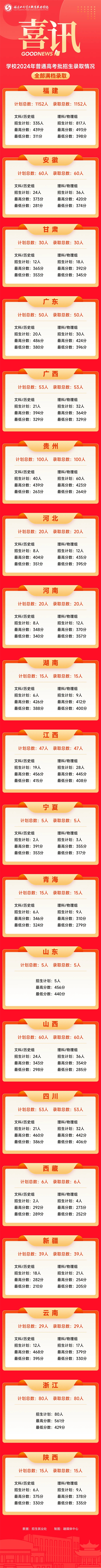 截至8月27日,福建水利電力職業技術學院面向福建、安徽、甘肅、廣東、廣西、貴州、河北、河南、湖南、江西、寧夏、青海、山東、山西、四川、西藏、新疆、云南、浙江、陜西等20個省(自治區)普通高考批1854個招生計劃全部滿檔錄取,生源質量大幅提升!