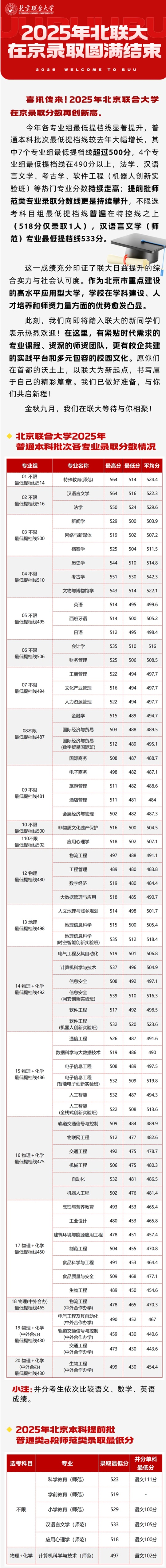 北京聯合大學2025年在京錄取圓滿結束︱生源質量穩步提升!