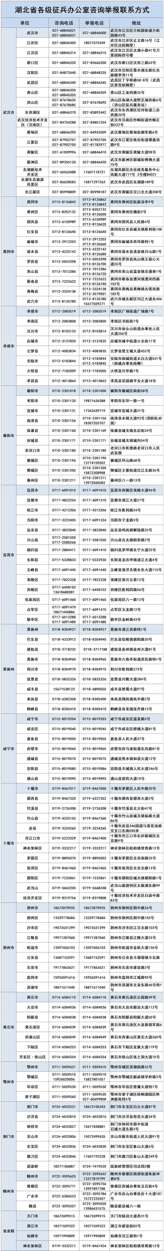 湖北省各級征兵辦公室咨詢舉報聯系方式