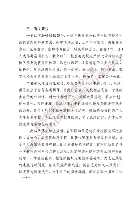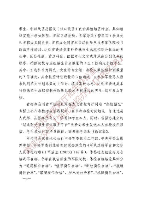 湖北:關于做好2024年軍隊院校招收普通高中畢業(yè)生工作的通知