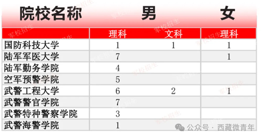 5.軍隊(duì)院校招生工作由國(guó)家和軍隊(duì)相關(guān)部門統(tǒng)一組織實(shí)施,在藏招生工作由西藏軍區(qū)招生工作辦公室和西藏自治區(qū)教育考試院等部門依據(jù)職責(zé)負(fù)責(zé),不會(huì)向考生收取任何費(fèi)用,請(qǐng)廣大考生和家長(zhǎng)增強(qiáng)防騙意識(shí)。