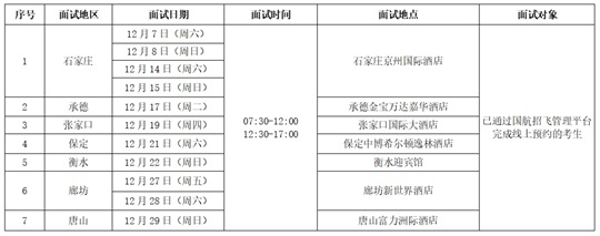 (二)預選初檢:登錄“國航招飛管理平臺”填寫信息、預約場次,參加國航招飛辦公室組織的現場初檢面試(含飛行職業能力傾向測試、英語測試、面試等);