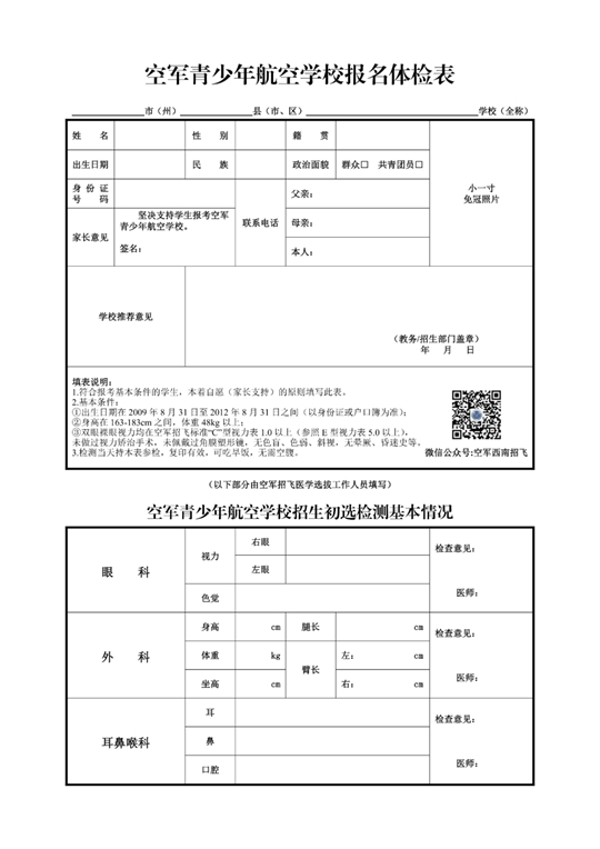 | 2026年度四川省空軍招飛(高三)和青航校招生(初三)初選檢測安排 |