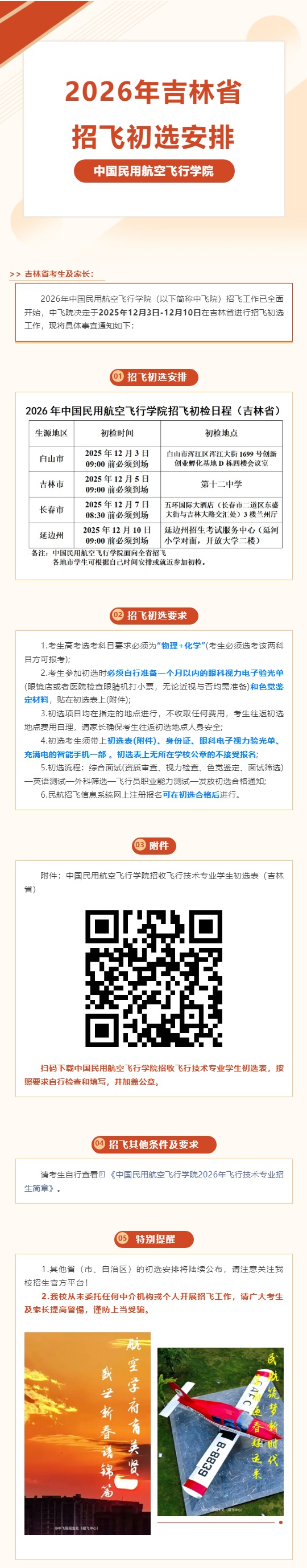 中國民用航空飛行學院2026年吉林省招飛初選安排