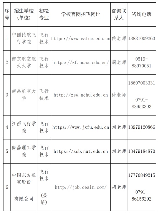 為做好中國民用航空飛行學院、南京航空航天大學、南昌航空大學、江西飛行學院、南昌理工學院、東航江西分公司等單位招收民航飛行技術專業考生初檢選拔工作,現將有關事項通知如下。