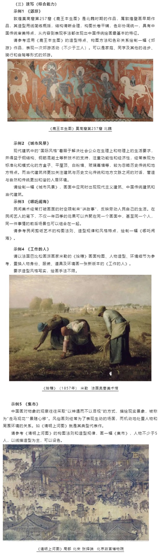 速寫(綜合能力)科目的命題內容來源于高中美術必修課《美術鑒賞》。