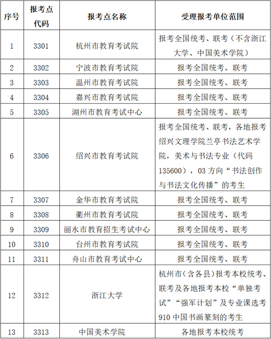 浙江報(bào)考點(diǎn)信息