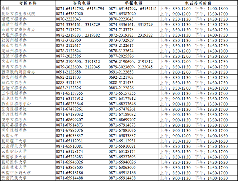 | 云南省2026年碩士研究生招生考試咨詢及舉報聯(lián)系方式(12月15-21日) |