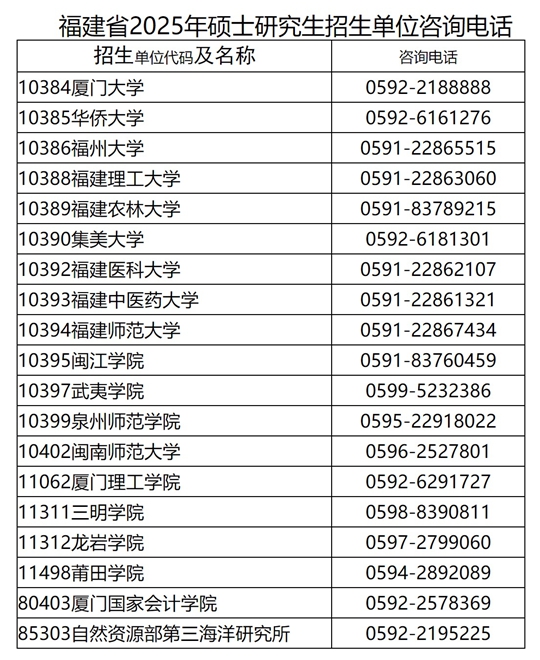 附件:福建省2025年碩士研究生招生單位咨詢電話